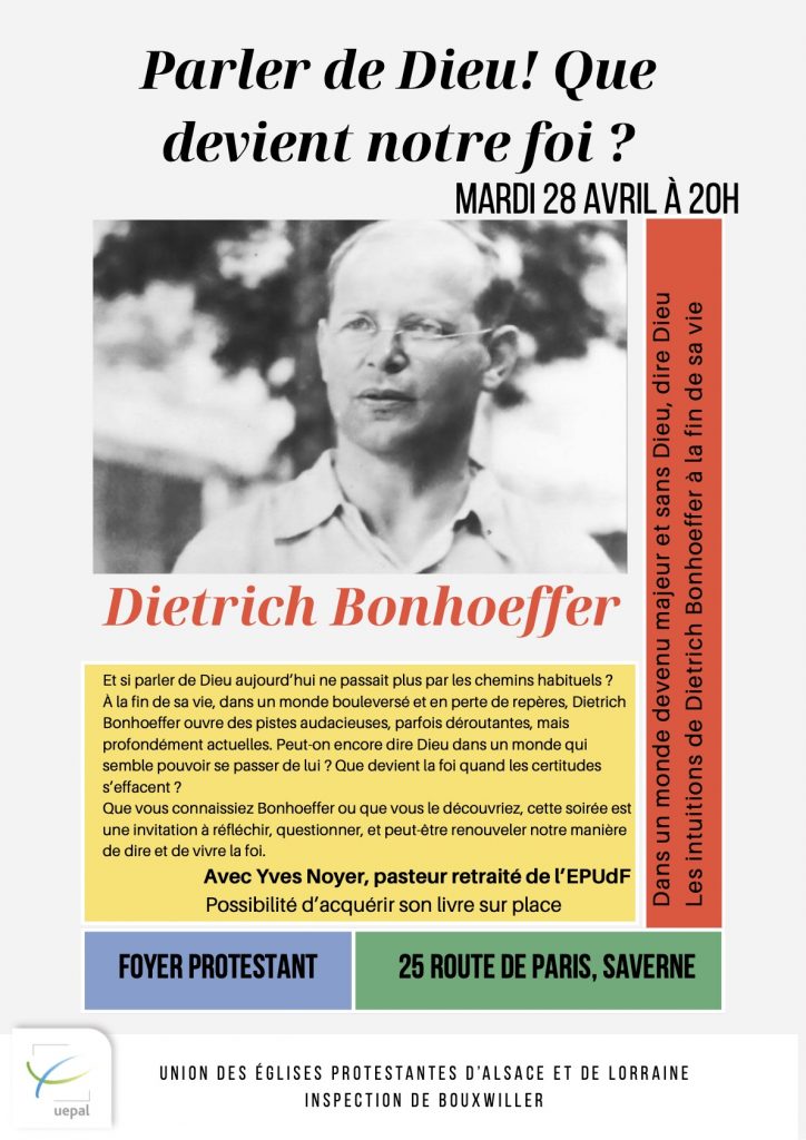CULTE CONSISTORIALL’épidémie, le confinement ont profondément perturbé notre vie. Aujourd’hui, dimanche 29 mars devait avoir lieu à à Furchhausen un culte consistorial. Il devait permettre notamment de marquer le départ en retraite du pasteur Cullmann. En suivant ce lien, vous pouvez, en retrouver le déroulement, y compris le message d’Isabelle Gerber, présidente de l’inspection de Bouxwiller. |