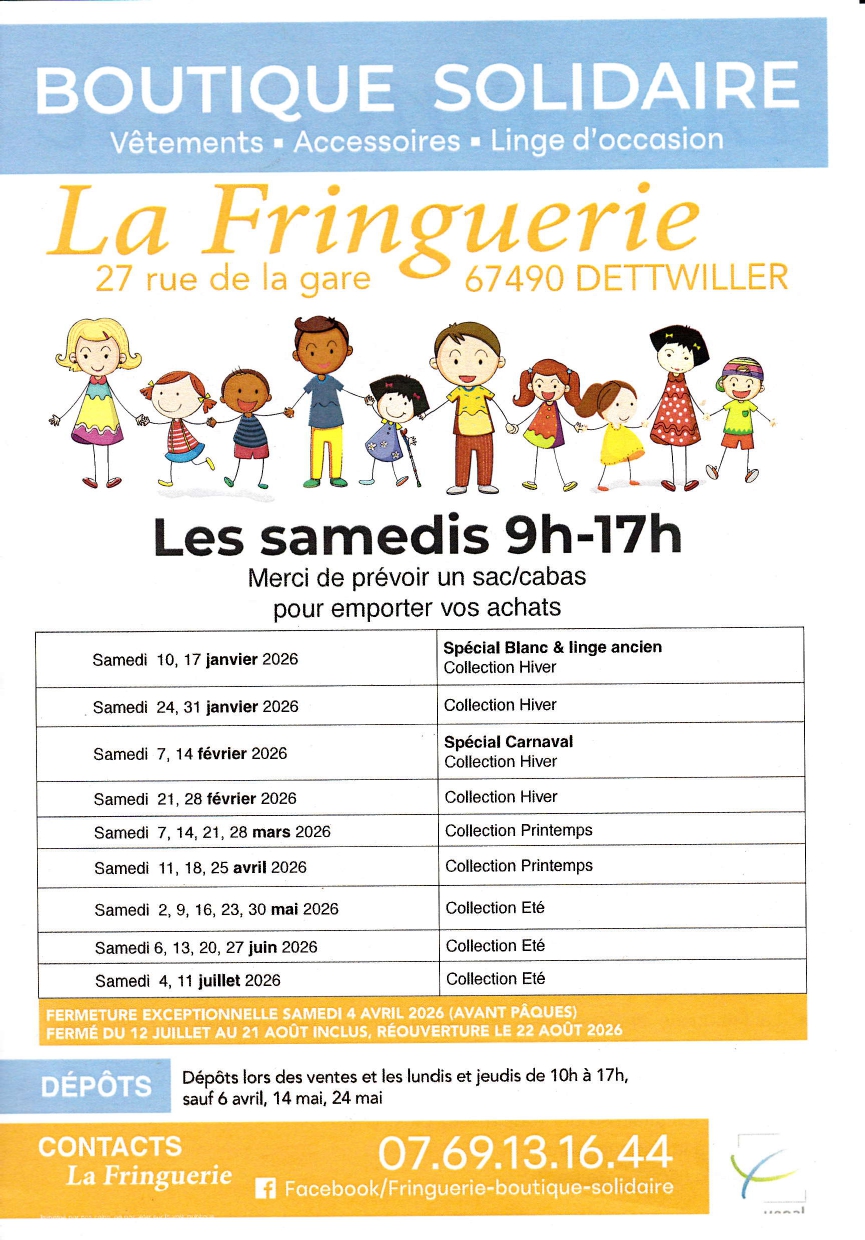 La Fringuerie s’inscrit dans un projet d’entraide sociale de proximité. Il est soutenu par les paroisses protestantes du consistoire de Dettwiller et par la commune de Dettwiller.